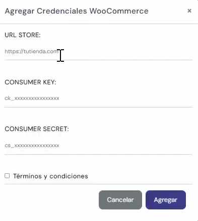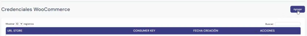 Ahora entramos a integrashop en la sección woocommerce y le damos al botón de agregar a las credenciales de woocommerce