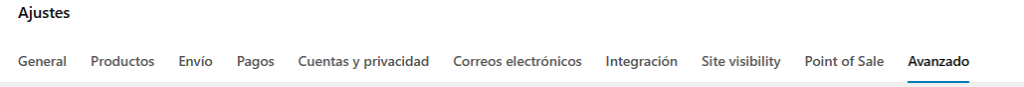 Primero tendremos que ir al panel de control de nuestra página web y buscar la sección de ajustes de Woocommerce y después “avanzado”