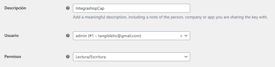 Para poder hacer una conexión con Integrashop necesitamos generar una llave en el Woocomerce. Por lo que es necesario permisos de administrador.